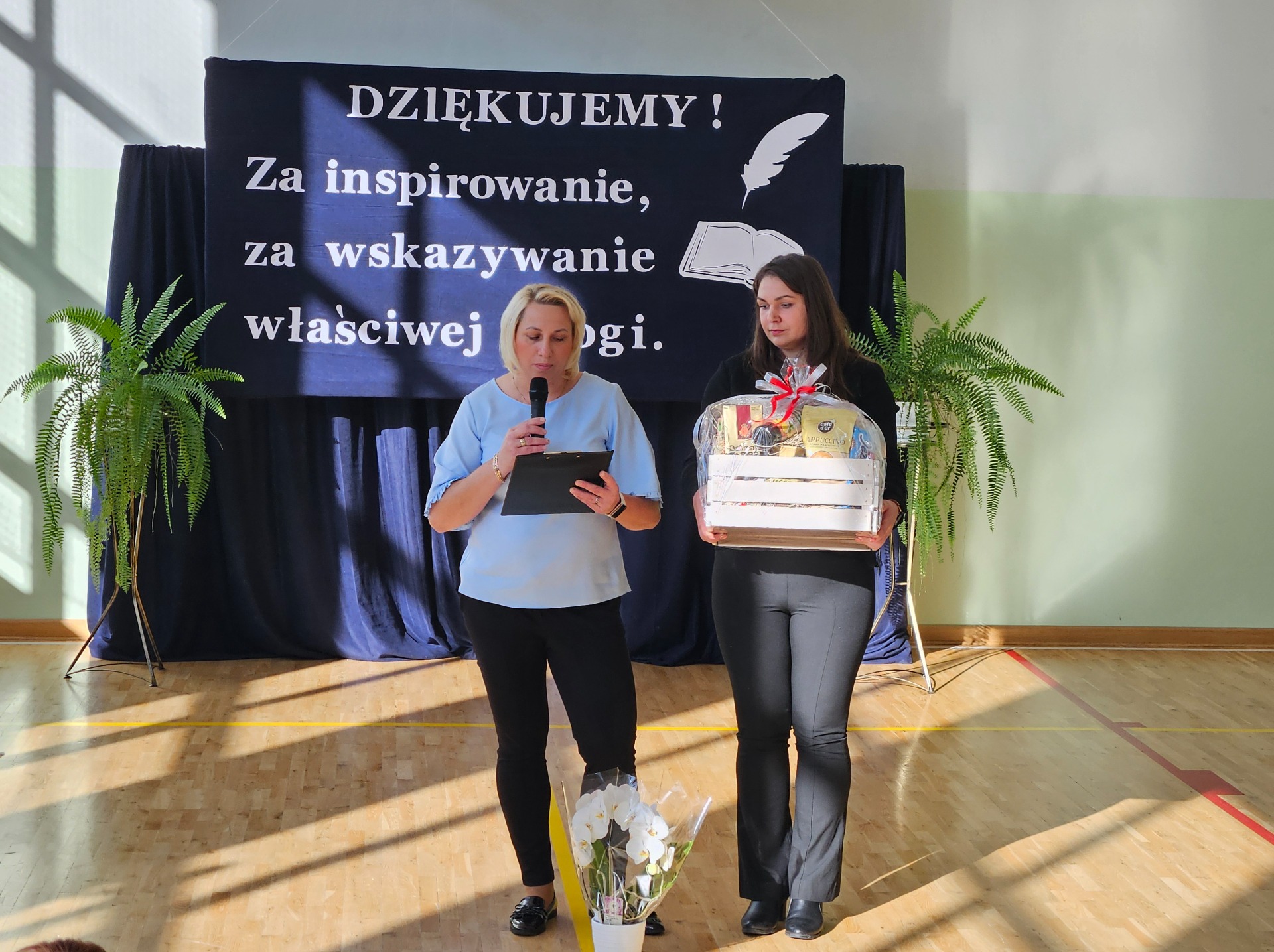 Podczas akademii pani dyrektor skierowała do wszystkich pracowników szkoły słowa wdzięczności i życzenia dalszej satysfakcji z pracy. Przedstawiciele Rady Rodziców przekazali w imieniu rodziców słowa podziękowania za codzienny trud, zaangażowanie i serce wkładane w wychowanie oraz edukację młodego pokolenia.
