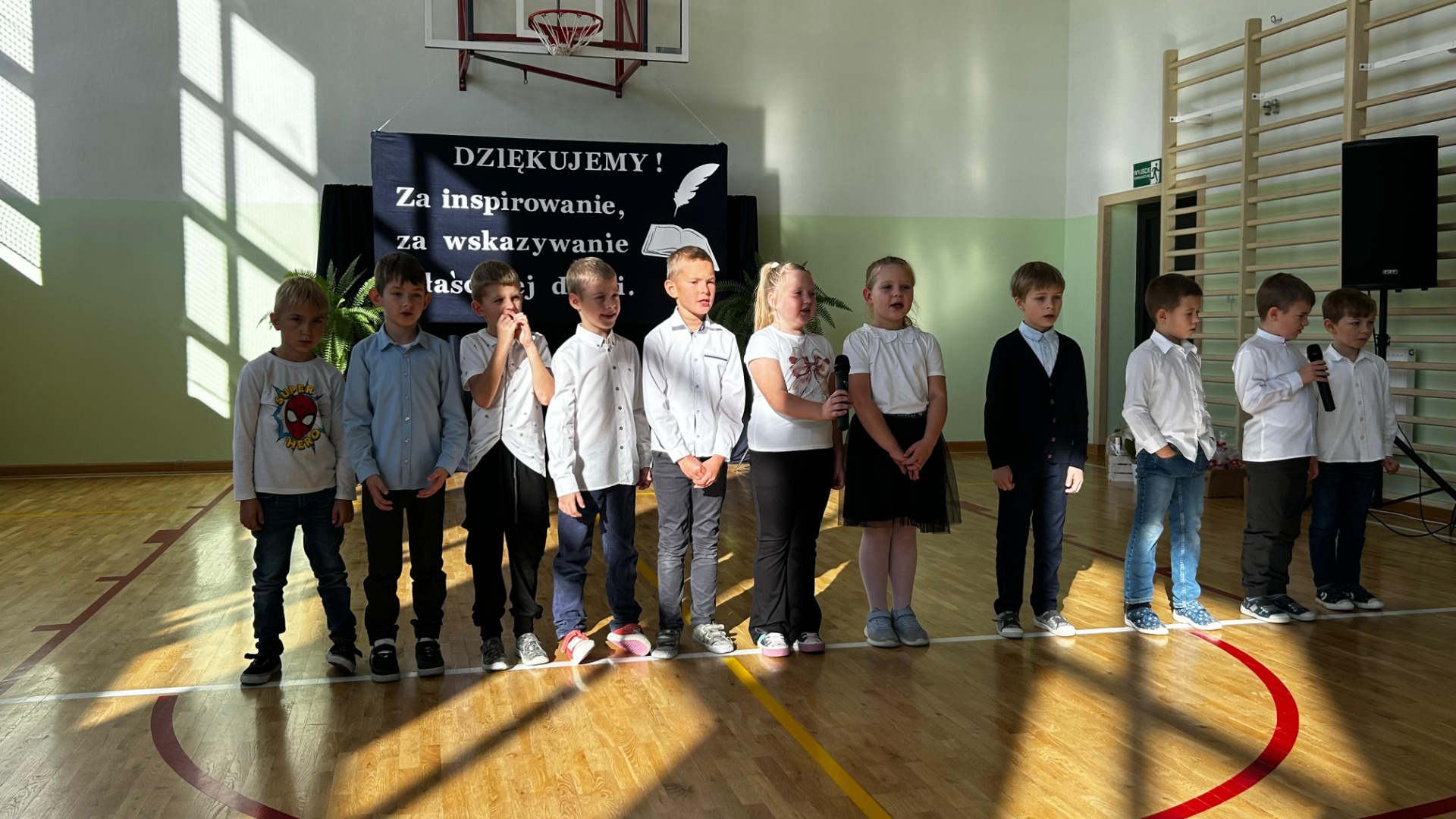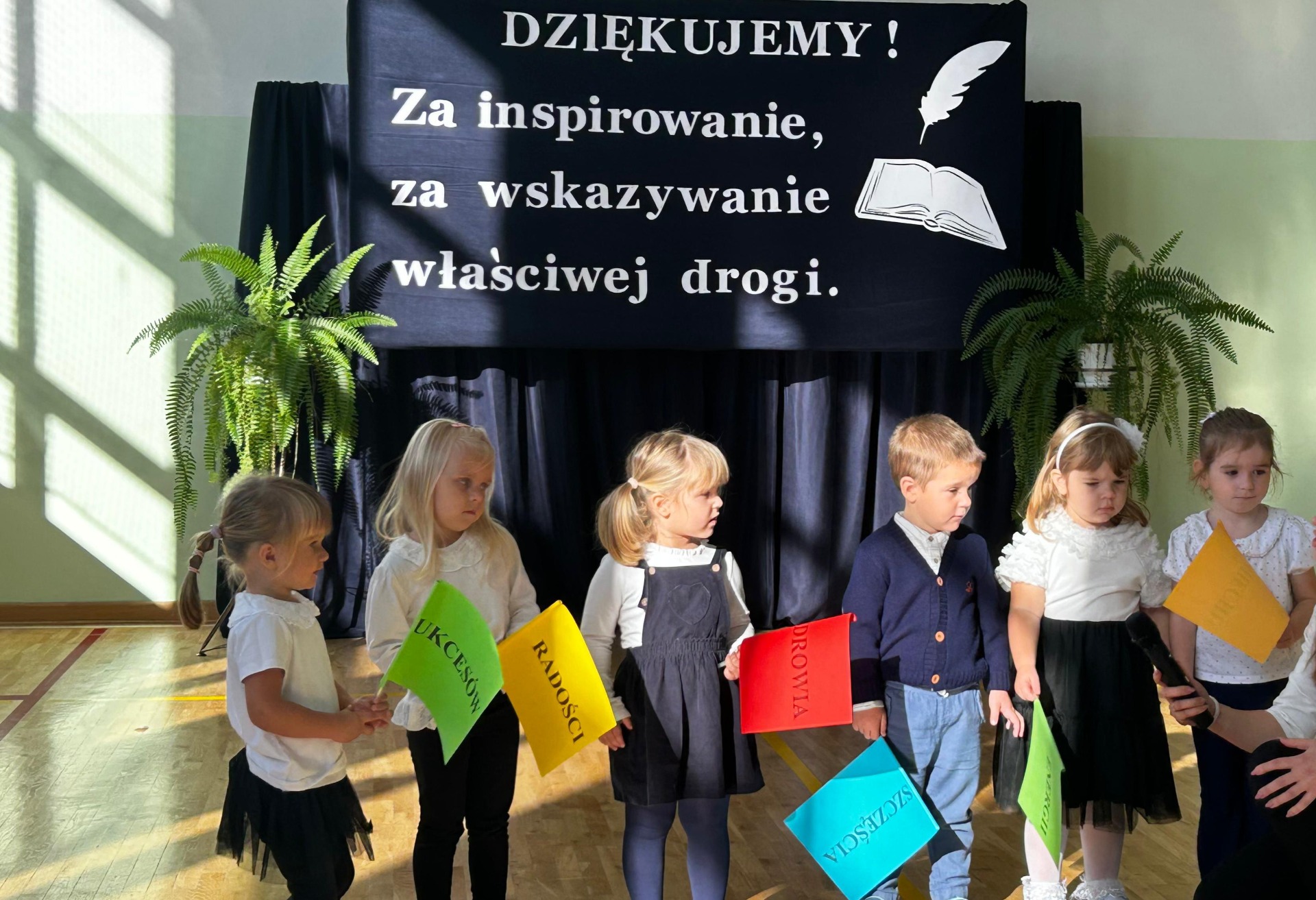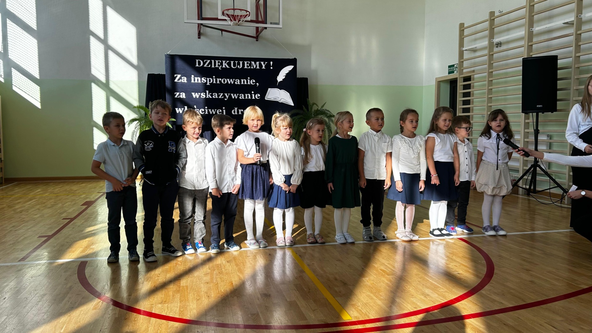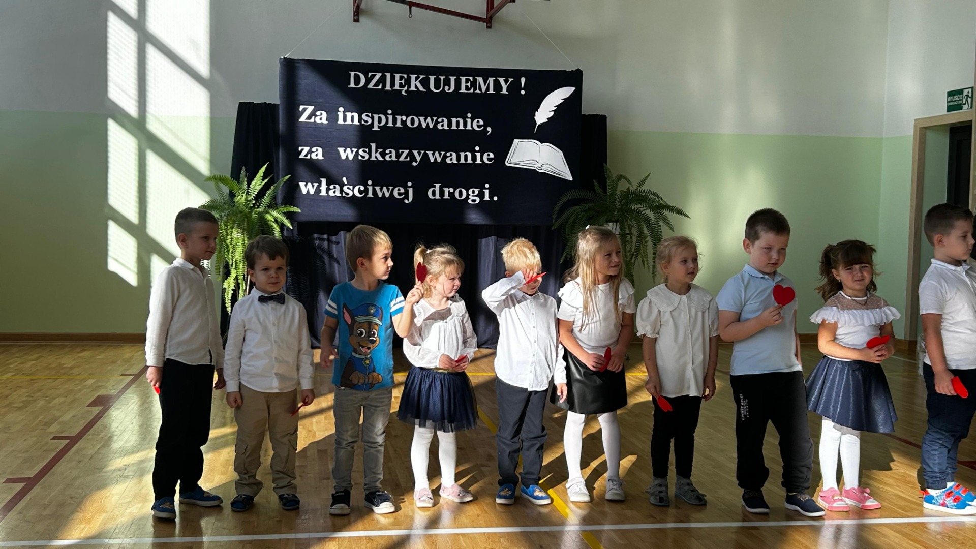 13 października w naszej szkole odbyła się uroczysta akademia z okazji Dnia Edukacji Narodowej – święta wszystkich pracowników oświaty. Wzięły w niej udział wszystkie dzieci – od najmłodszej grupy przedszkolnej po uczniów klas VIII.
