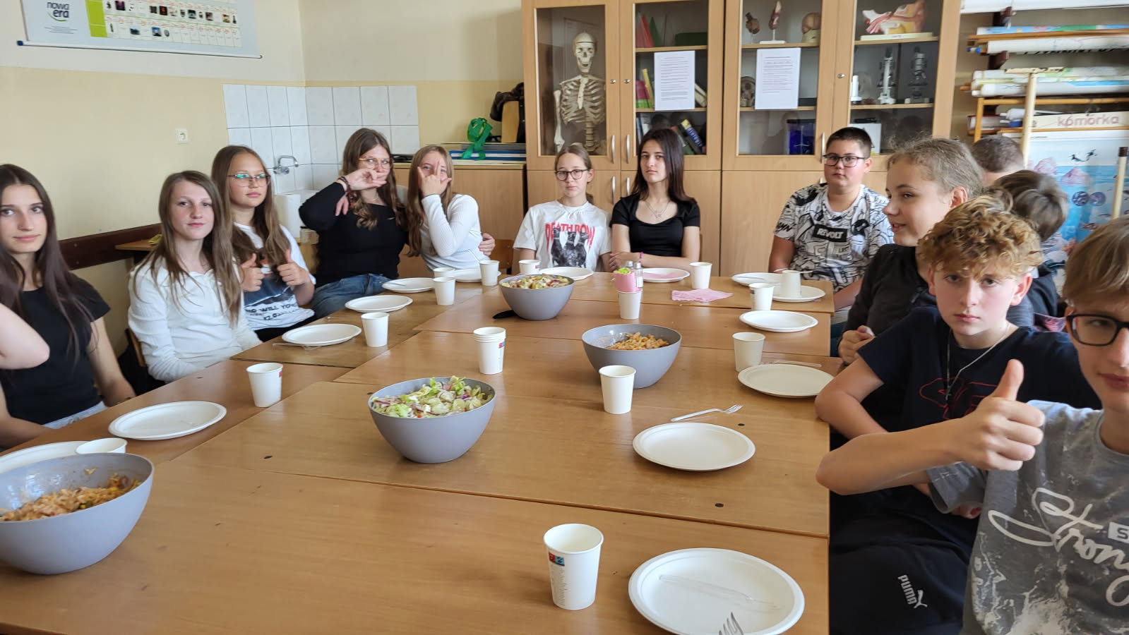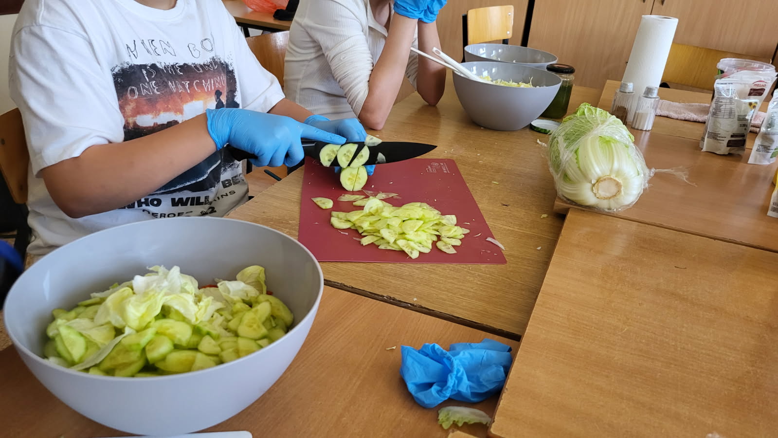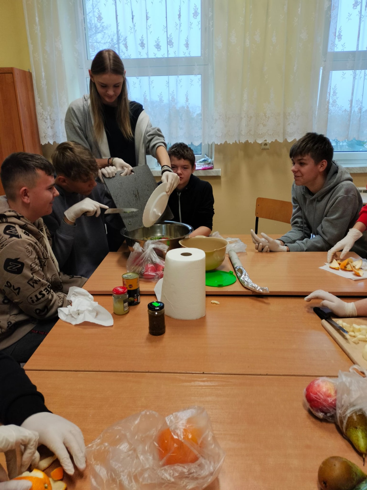 W dniach 03.11-13.11.2025 roku nasi uczniowie od 3 latków do kl. VIII wcielili się w rolę kucharzy i wzięli udział w zajęciach promujących zdrowy styl życia i prawidłowe nawyki żywieniowe. W ramach wspólnej akcji, klasy przygotowały kolorowe sałatki, pyszne kanapki i zdrowe przekąski. W klasach zrobiło się smacznie i kolorowo, było dużo zieleni tej jesieni. Uczniowie pracowali w zespołach, dbając nie tylko o smak, ale też o estetyczny wygląd swoich potraw. W salach unosił się zapach świeżych warzyw, owoców i ziół, a na stołach pojawiło się mnóstwo apetycznych kompozycji. Było mnóstwo uśmiechów, wspólnej integracji, rozmów, planowania jak to wszystko zrobić, aby było smaczne i ciekawe. Była to doskonała okazja, aby przypomnieć sobie jak ważne jest zdrowe odżywianie i wspólne spożywanie posiłków w miłej atmosferze.