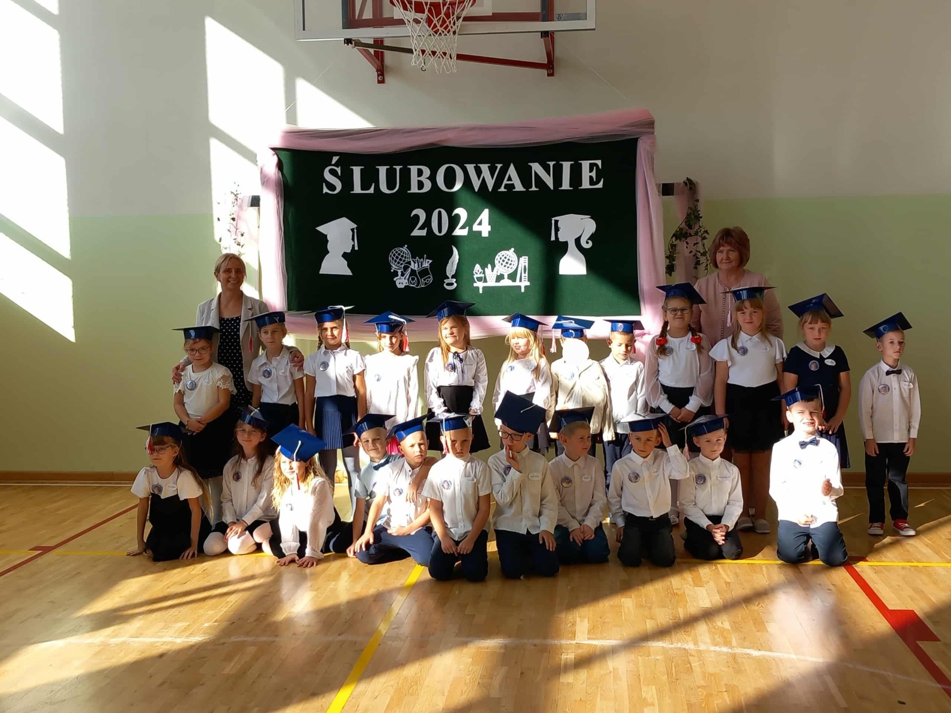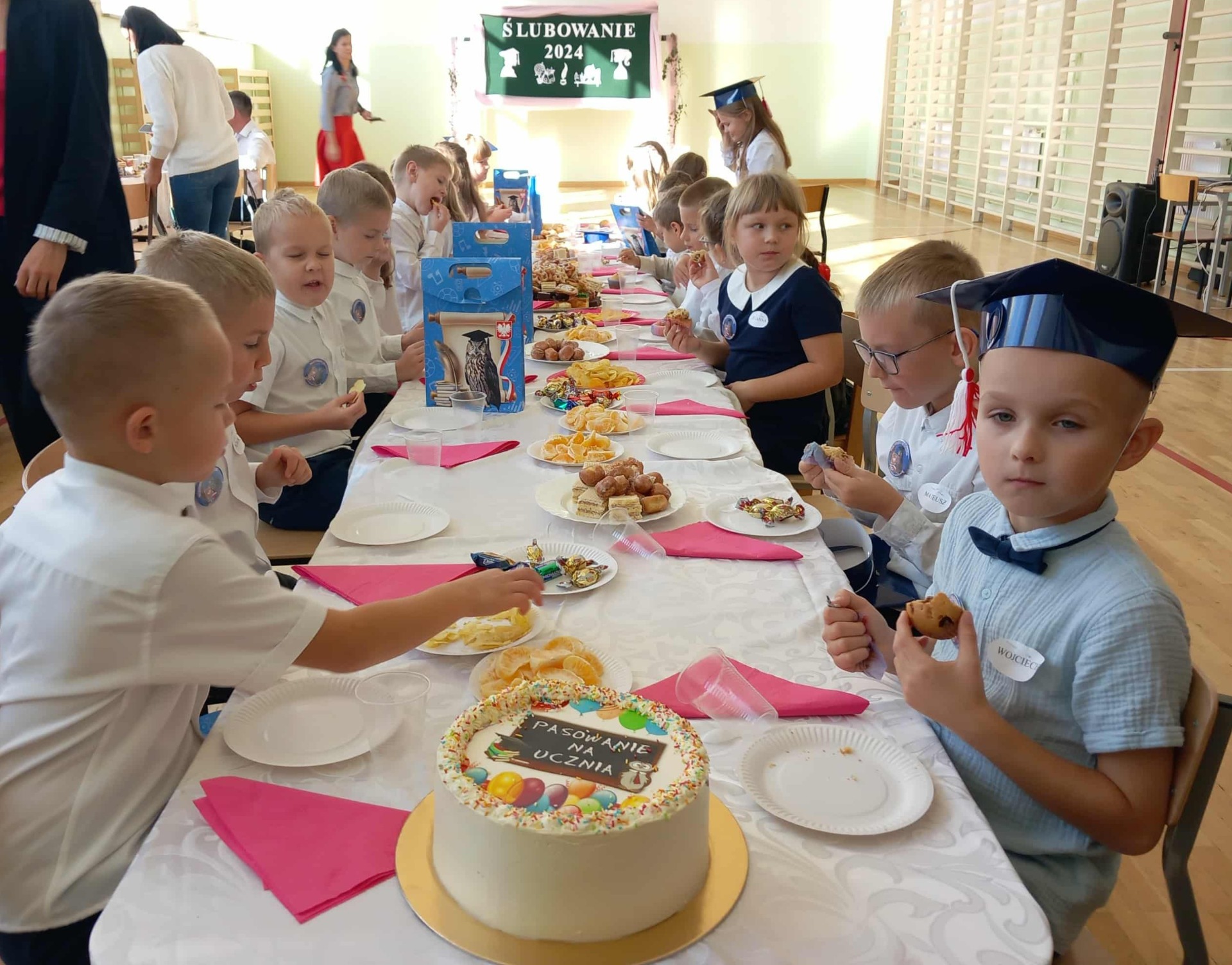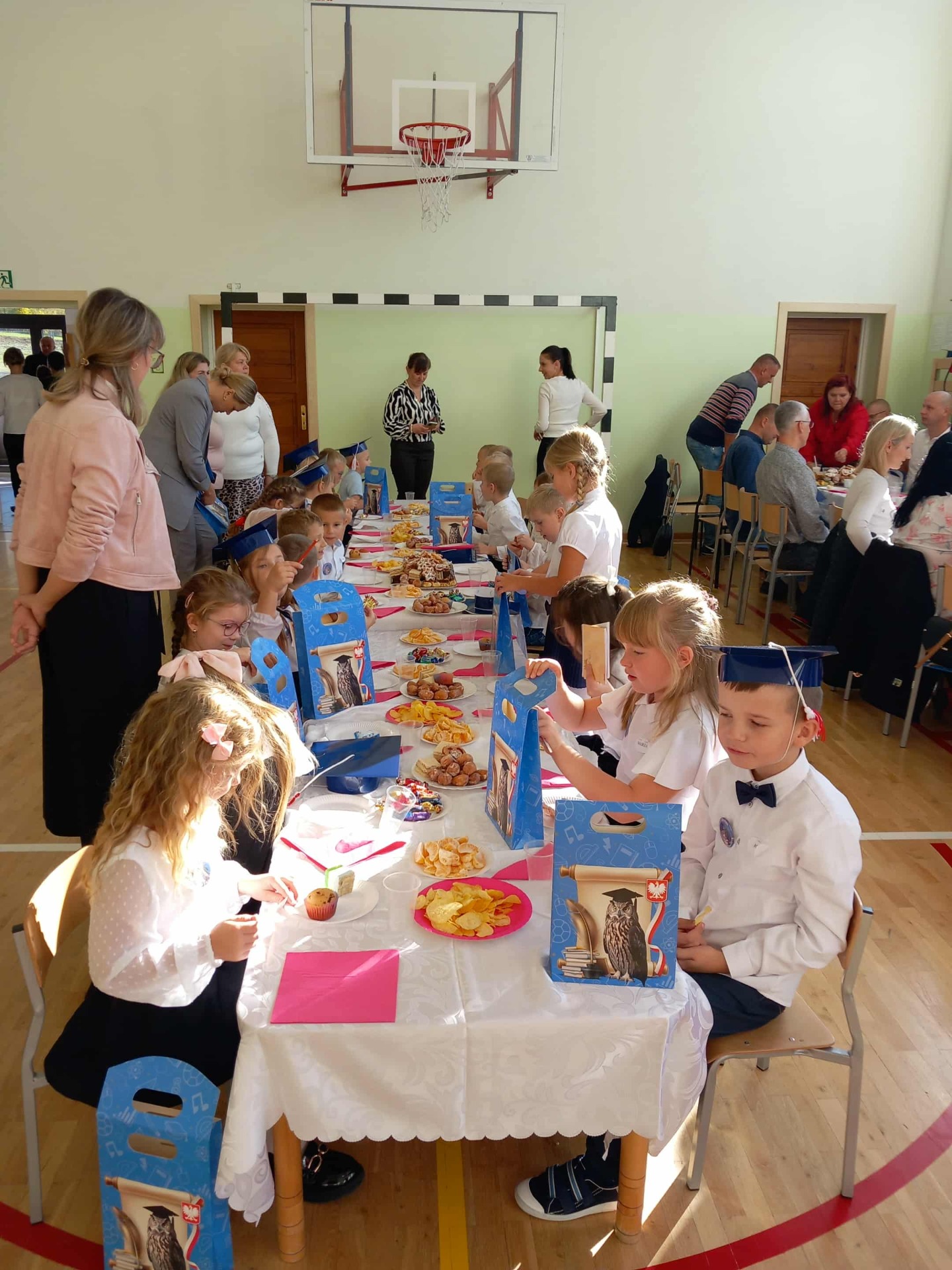 Na zakończenie pełnoprawni uczniowie otrzymali pamiątkowe dyplomy i drobne upominki, a goście nagrodzili ich występ gromkimi brawami. Po oficjalnej części odbyło się wspólne pamiątkowe zdjęcie oraz słodki poczęstunek przygotowany przez rodziców. Uroczystość przebiegła w miłej i radosnej atmosferze. Dla nowych uczniów był to dzień pełen emocji, dumy i wzruszeń, który na długo pozostanie w ich pamięci.