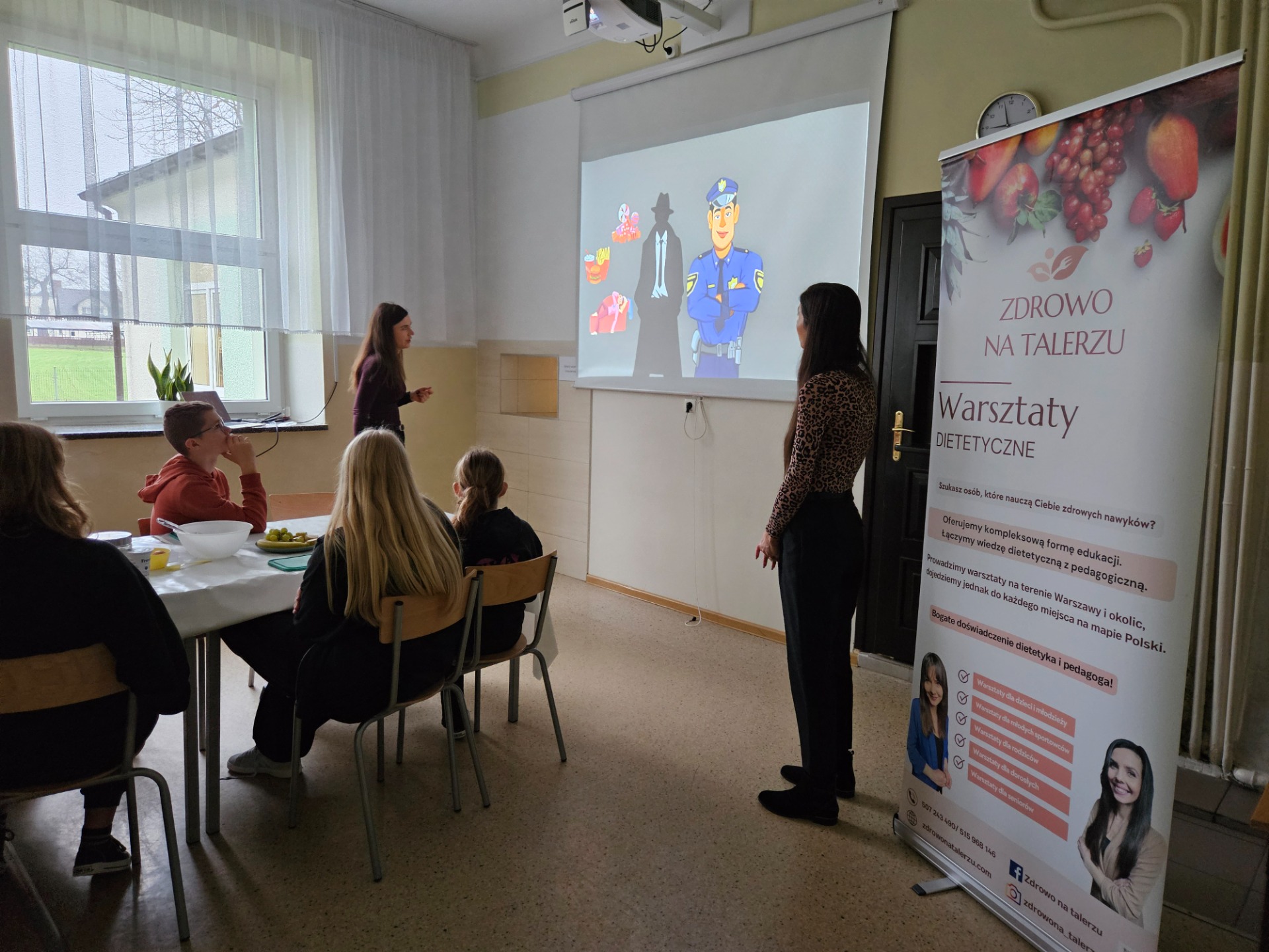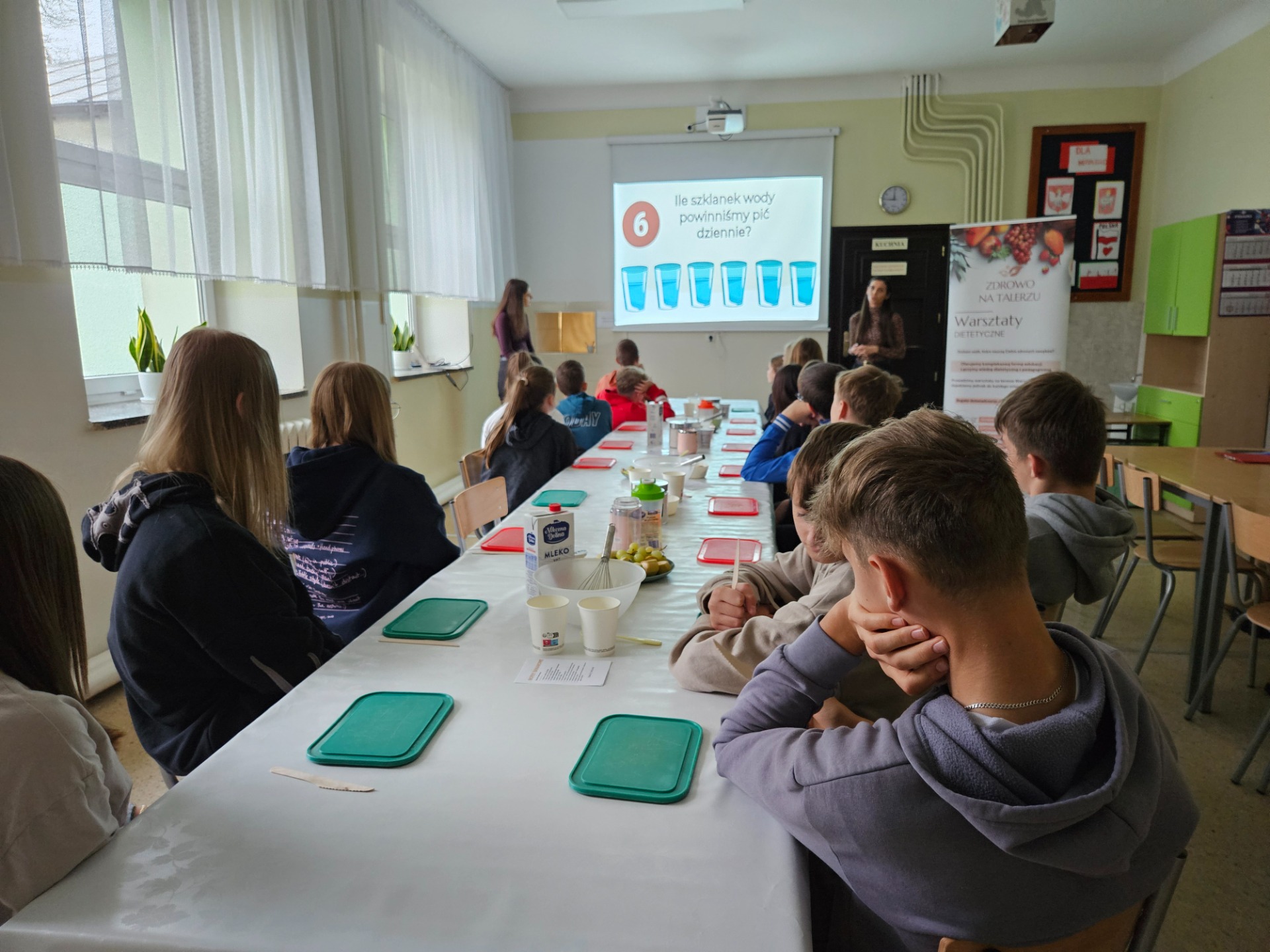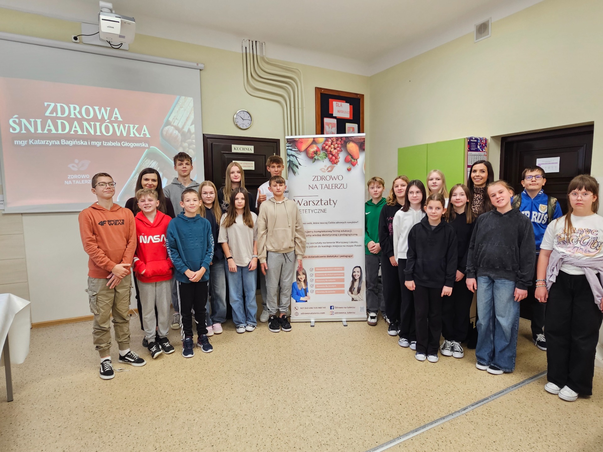 17 listopada w naszej szkole obyły się mobilne warsztaty dietetyczne pt. „Zdrowe śniadanie - dobry start. Śniadaniówka pełna mocy” dla klas IV-VIII. Zajęcia rozpoczęły się prelekcją połączoną z prezentacją multimedialną, podczas której w przystępny i obrazowy sposób przedstawiono przykłady wartościowych zdrowych śniadań. Jak je komponować, aby dodawały energii i wspierały koncentrację. Pani dietetyk i pedagog w ciekawy sposób pokazały jak tworzyć tzw. ”mur obronny” naszego organizmu i pamiętać o jedzeniu śniadania.