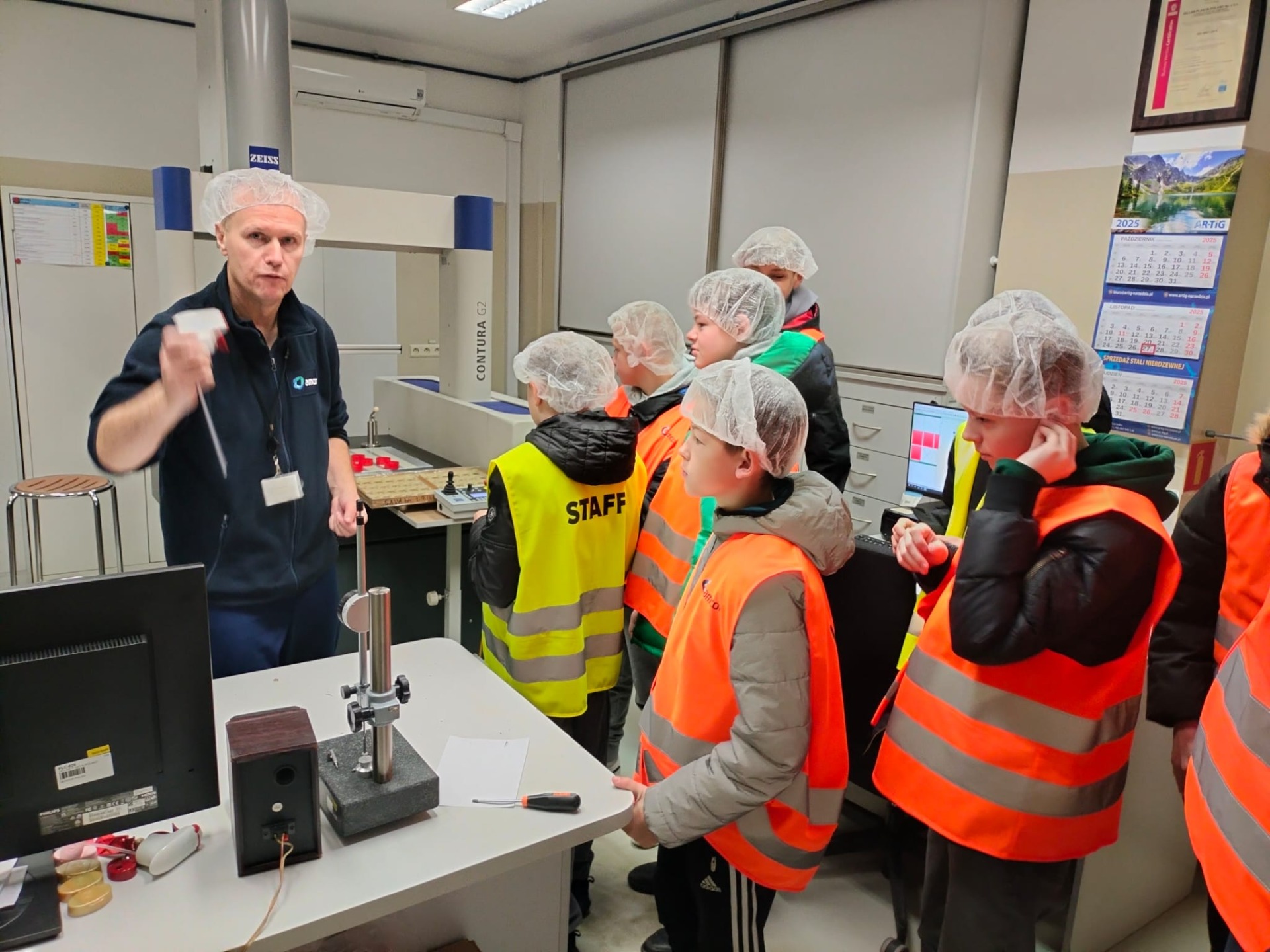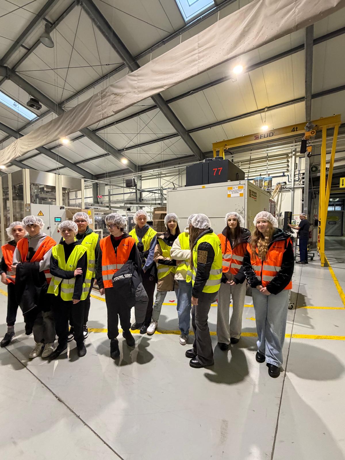 W dniu 27.11.2025 r. uczniowie naszej szkoły wzięli udział w wycieczce, której celem było rozwijanie wrażliwości artystycznej oraz kontakt z kulturą, a także poznawanie różnych środowisk pracy w ramach doradztwa zawodowego. Pierwszym etapem była wizyta w fabryce opakowań ZELLER w Woli Rębkowskiej. Uczniowie obejrzeli prezentację multimedialną dotyczącą działalności zakładu, a następnie – podzieleni na trzy grupy – zwiedzali halę produkcyjną, poznając nowoczesne technologie i specyfikę pracy przy wytwarzaniu opakowań. Na koniec każdy otrzymał drobne upominki.