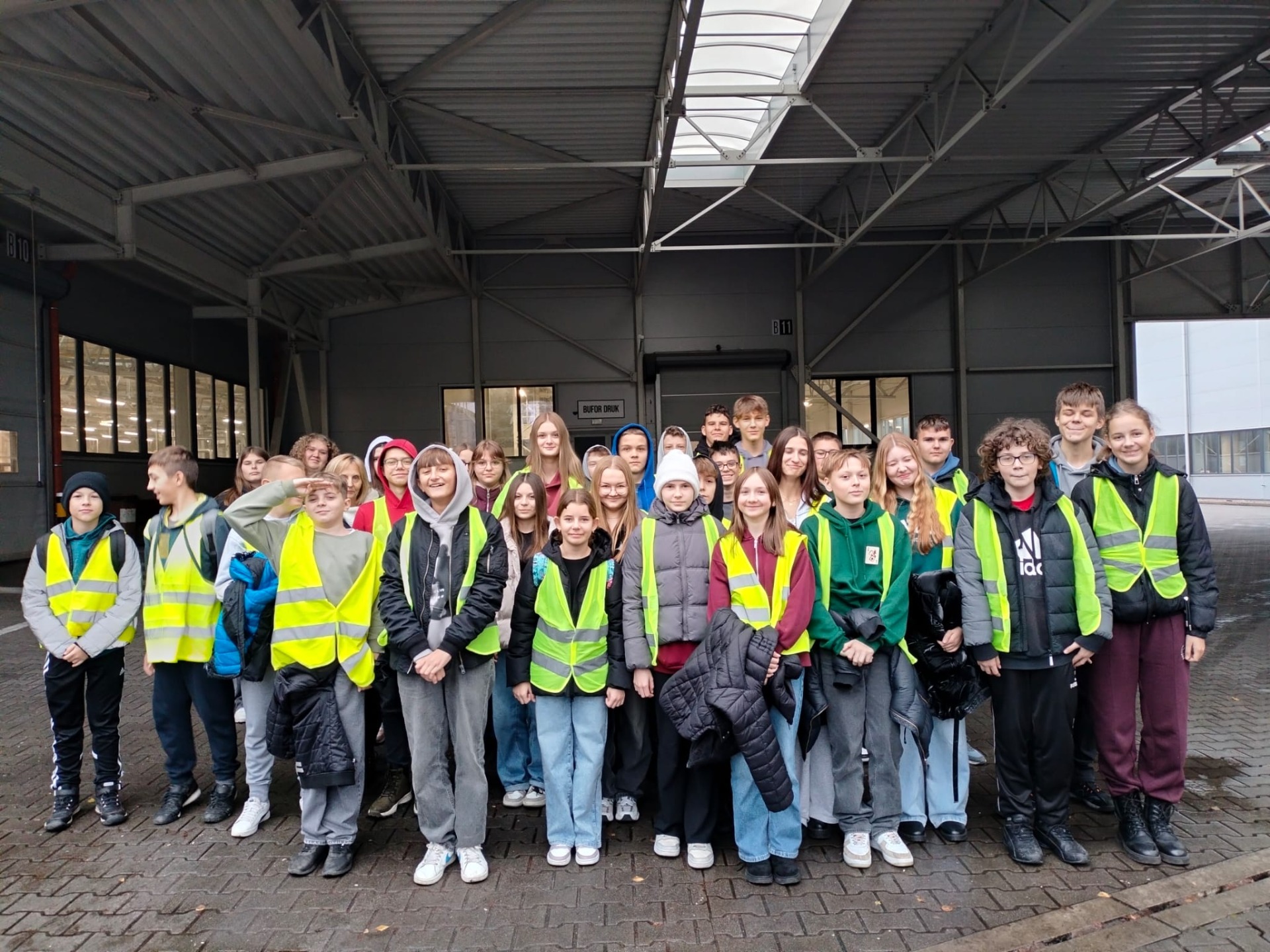 Następnie młodzież udała się do drukarni INTERDRUK w Sulbinach – największej w Polsce i jednej z największych w Europie. Zwiedzanie zakładu pozwoliło zobaczyć proces produkcji artykułów papierniczych, od projektu aż po gotowy wyrób. Uczniowie zapoznali się z pracą na różnych stanowiskach, co stanowiło ważny element preorientacji zawodowej. Na zakończenie wizyty każdy otrzymał dwa zeszyty, długopis oraz ołówek.