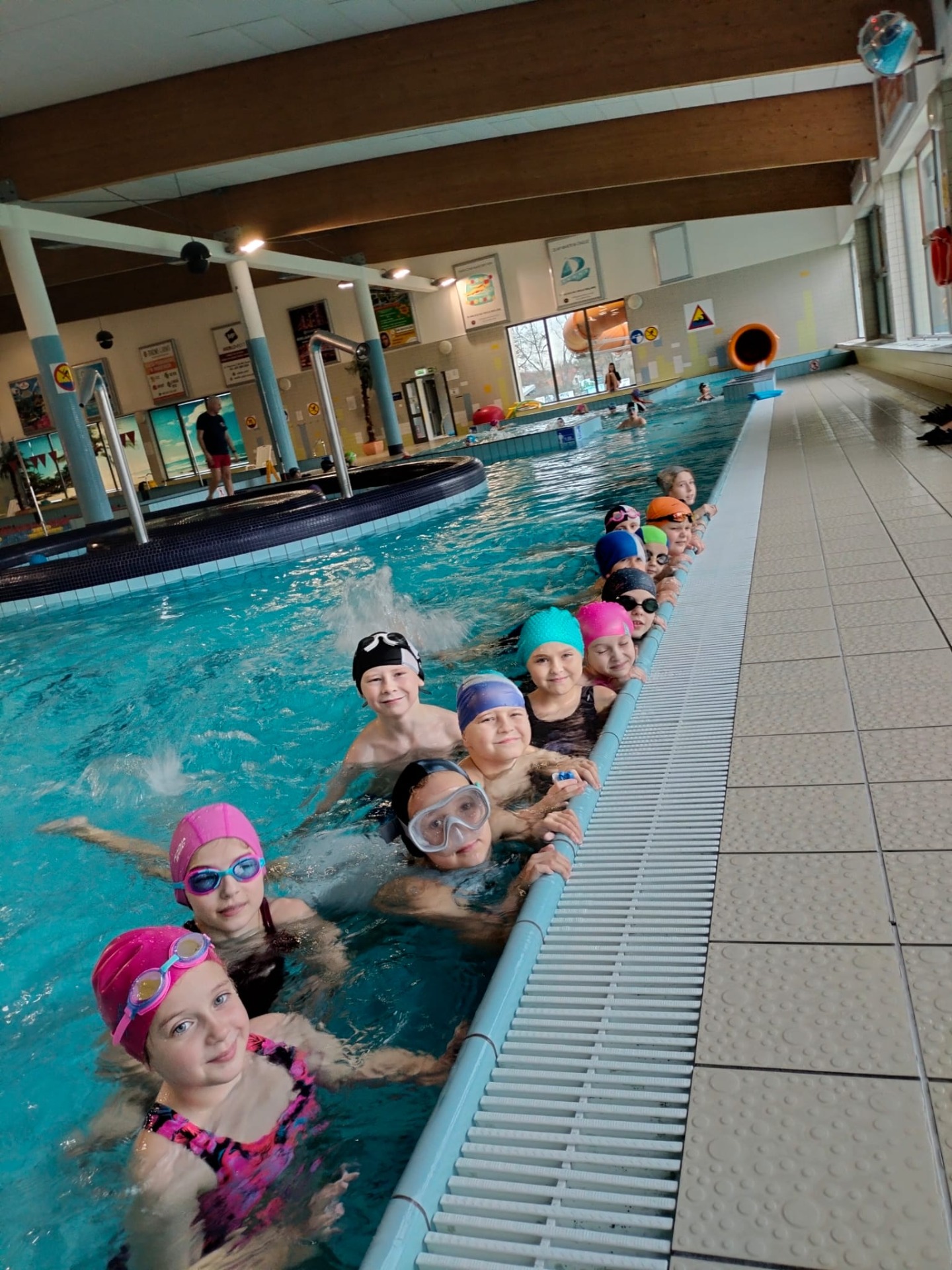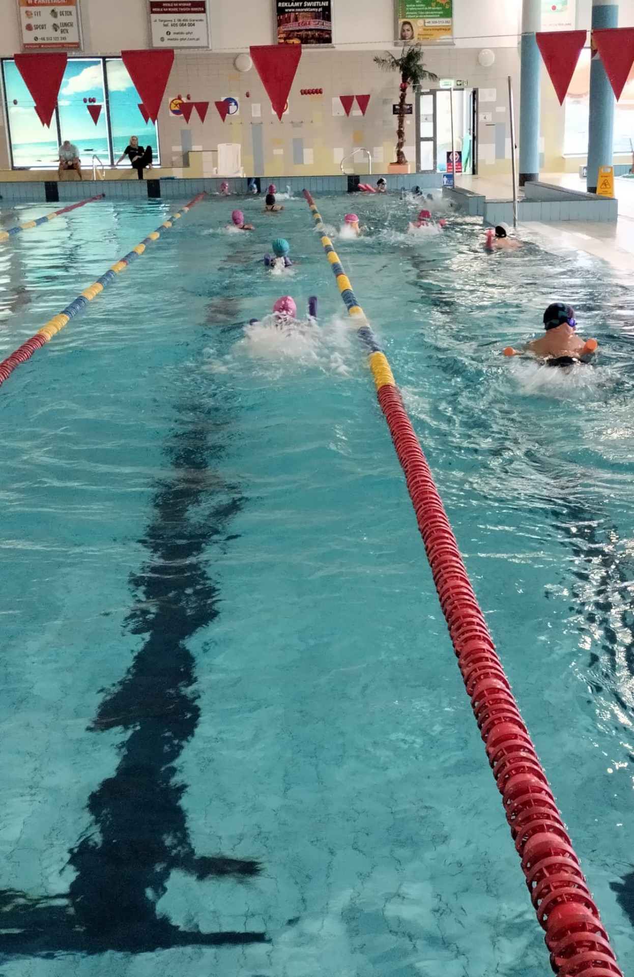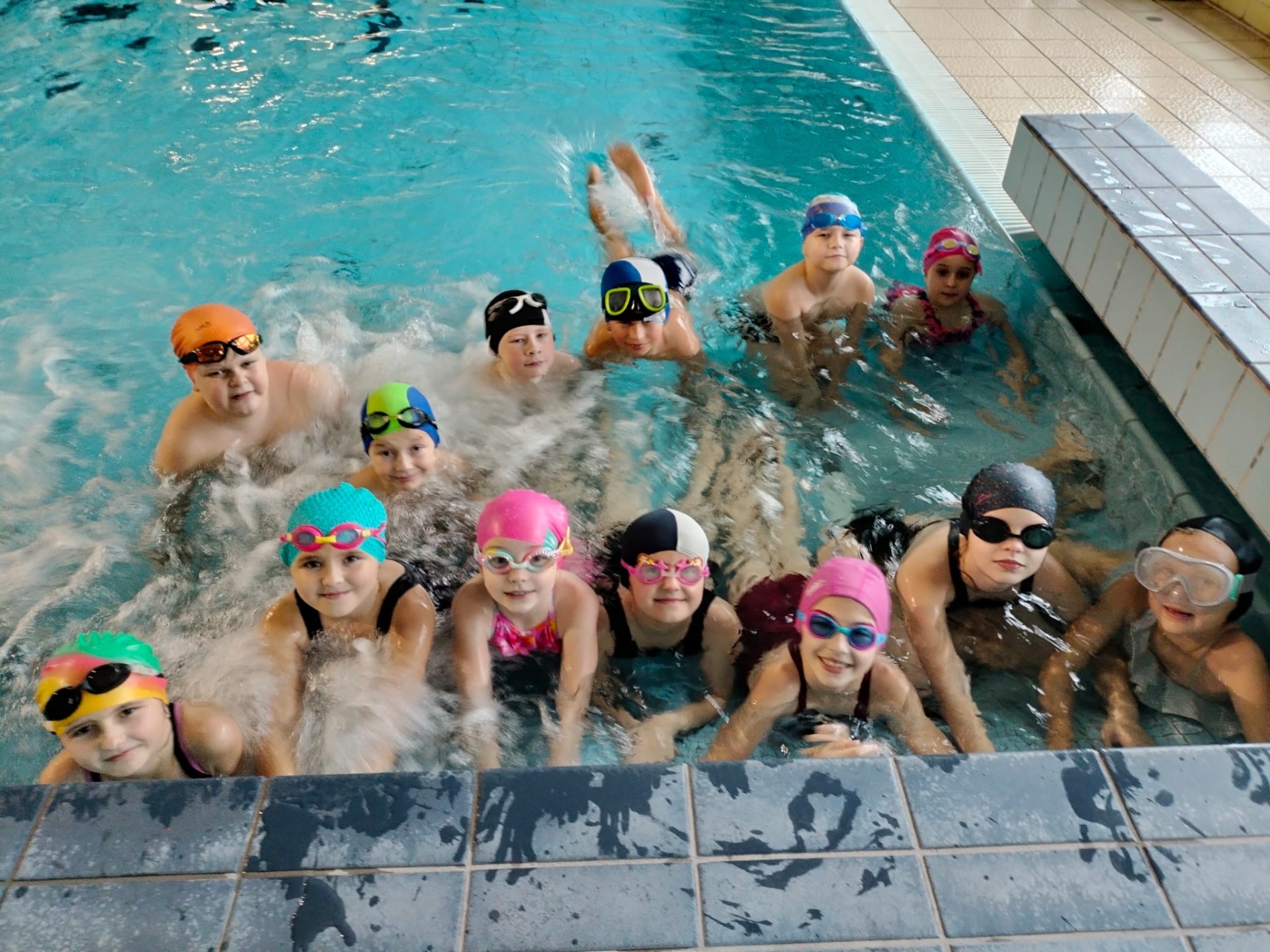 Uczniowie uczyli się pływać pod czujnym okiem instruktorów. Zajęcia w wodzie sprawiły radość uczestnikom. Były wspaniałą okazją do nauki, zabawy i integracji.