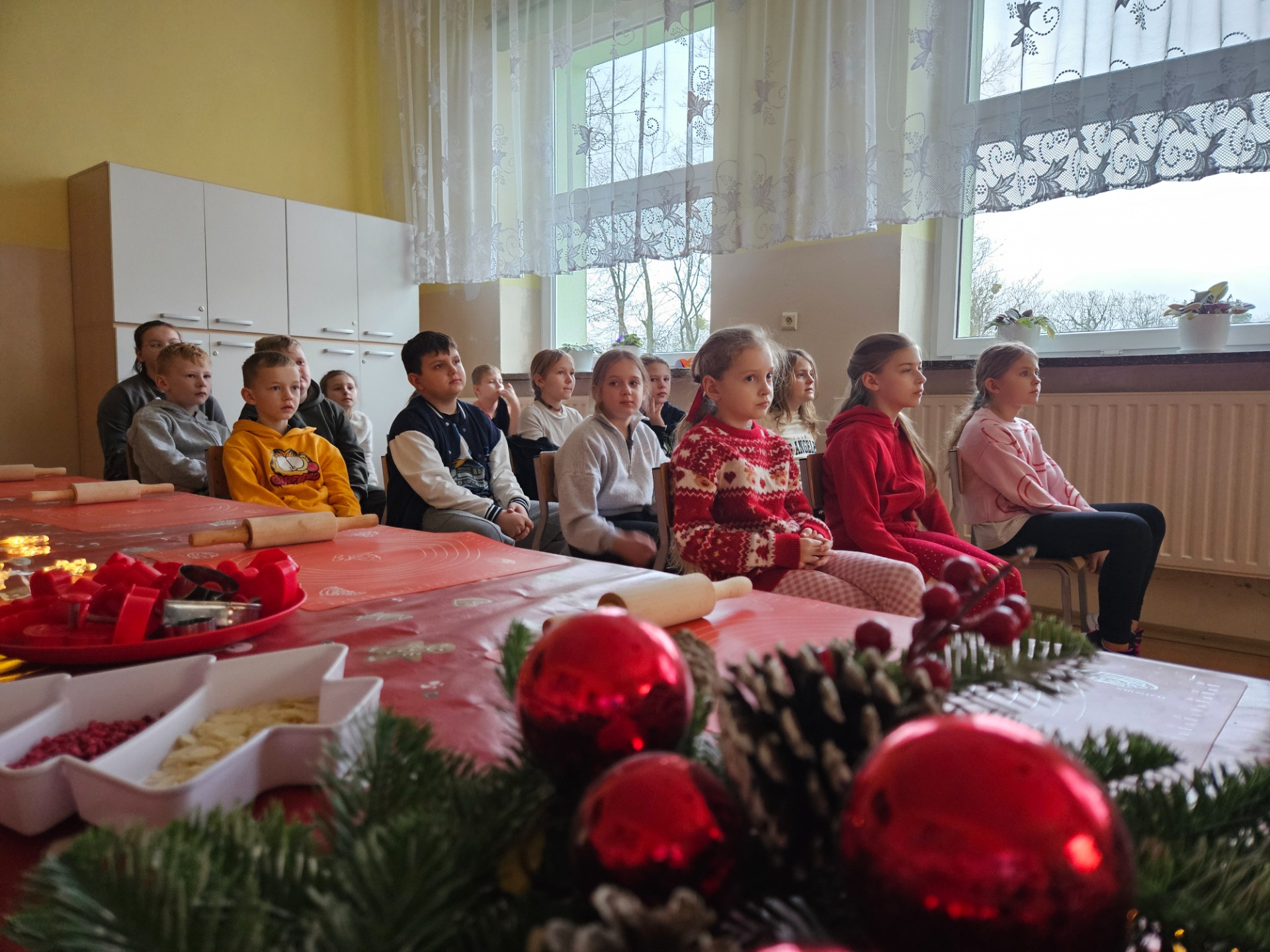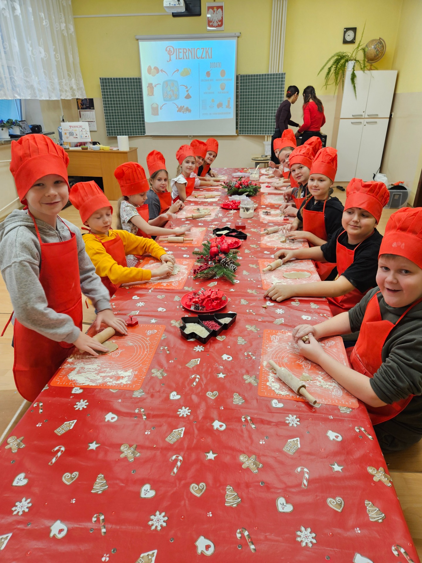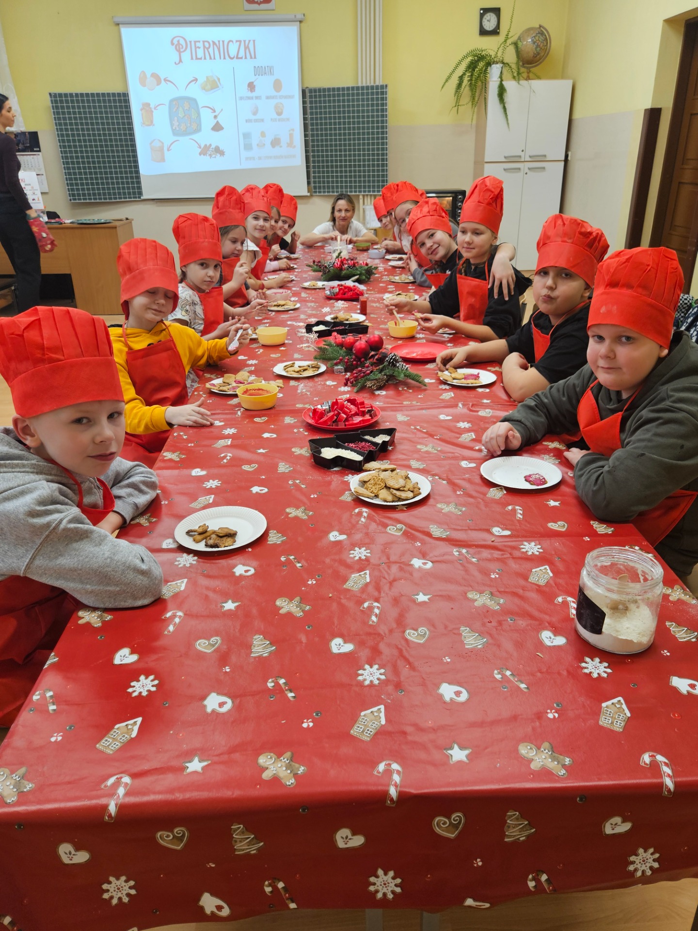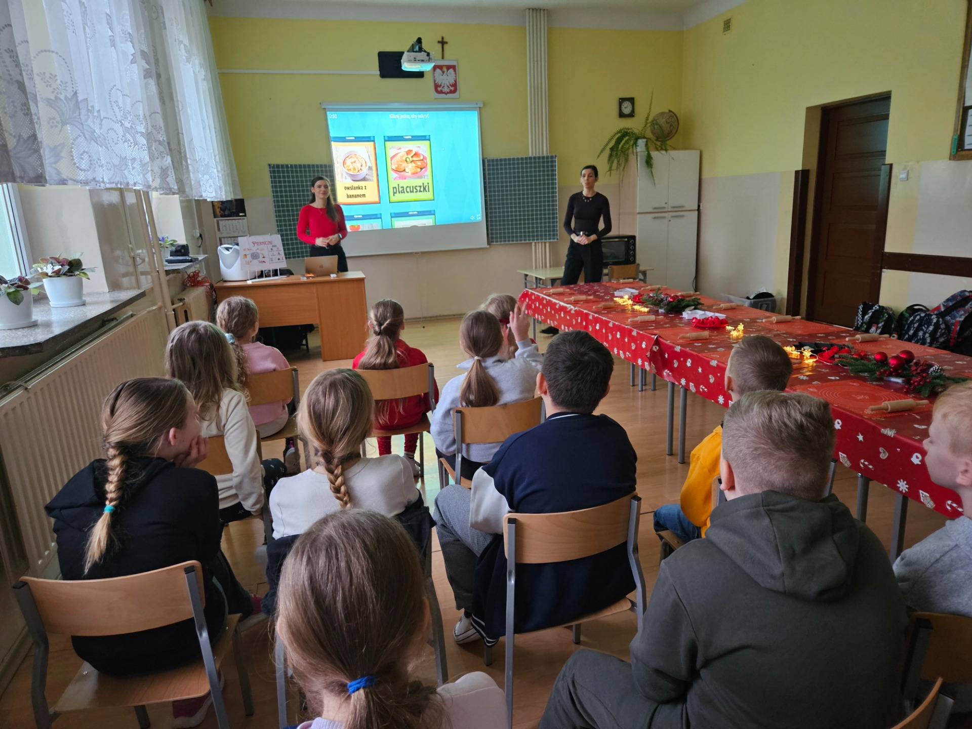 Podczas spotkania uczniowie zgłębili magię tradycyjnych potraw świątecznych oraz dowiedzieli się, co zrobić, aby nie przejeść się w święta, a jednocześnie cieszyć się ich wyjątkowym smakiem. Pani dietetyk zachęcała dzieci do picia wody, szczególnie w tym okresie kiedy możemy spożyć duże ilości słodzonych napoi oraz do wspólnych, rodzinnych spacerów, zwłaszcza po posiłkach.