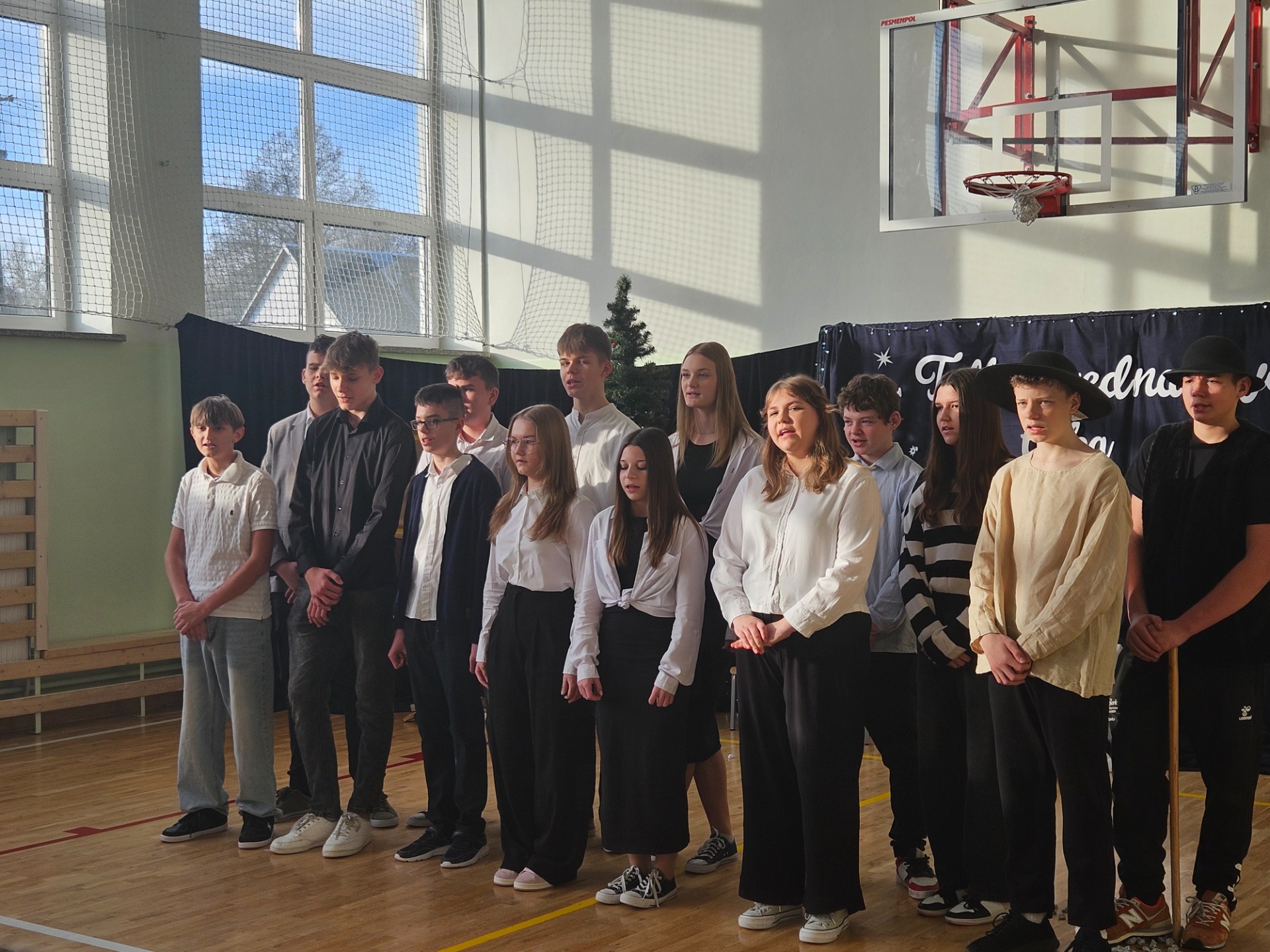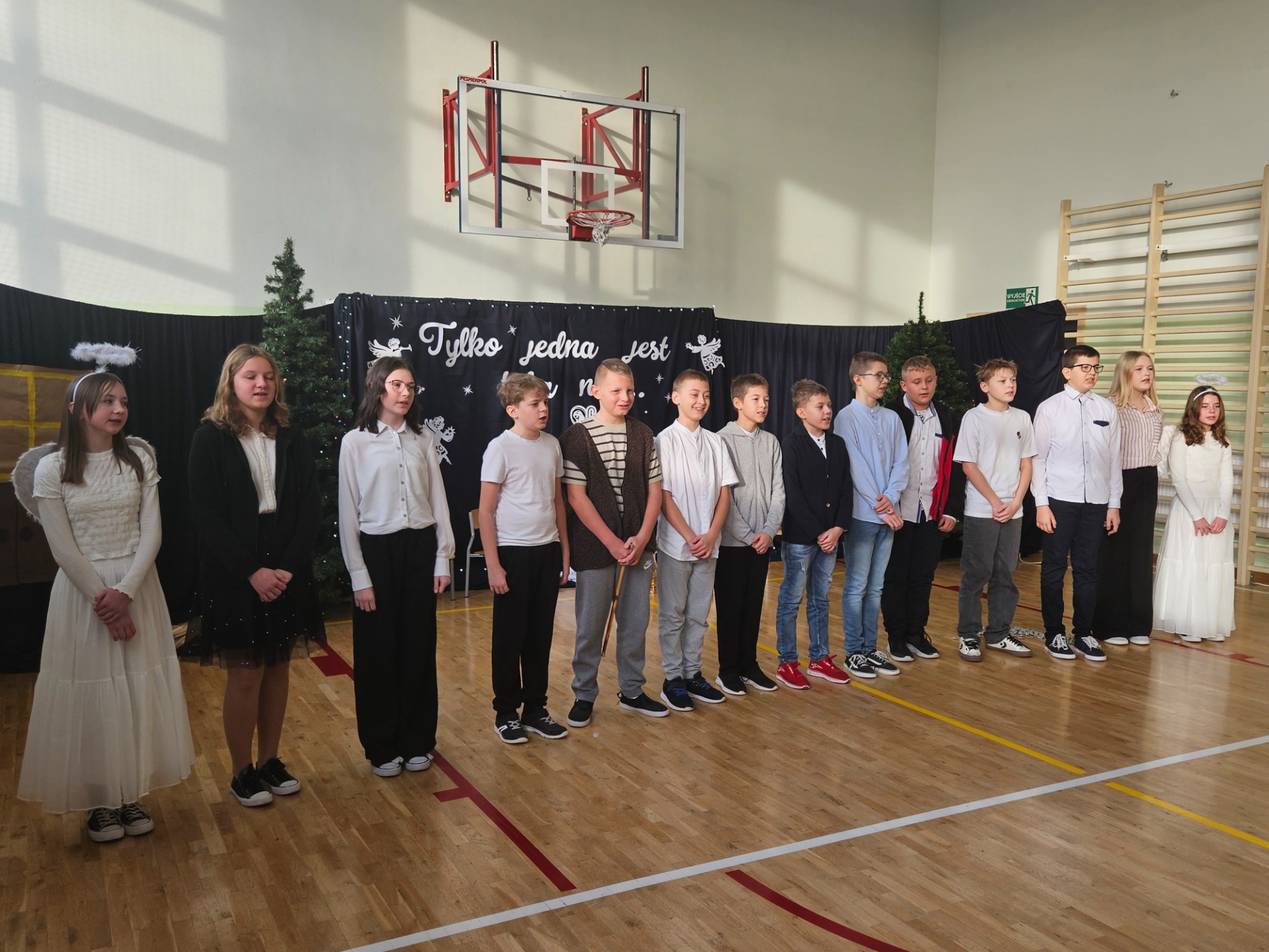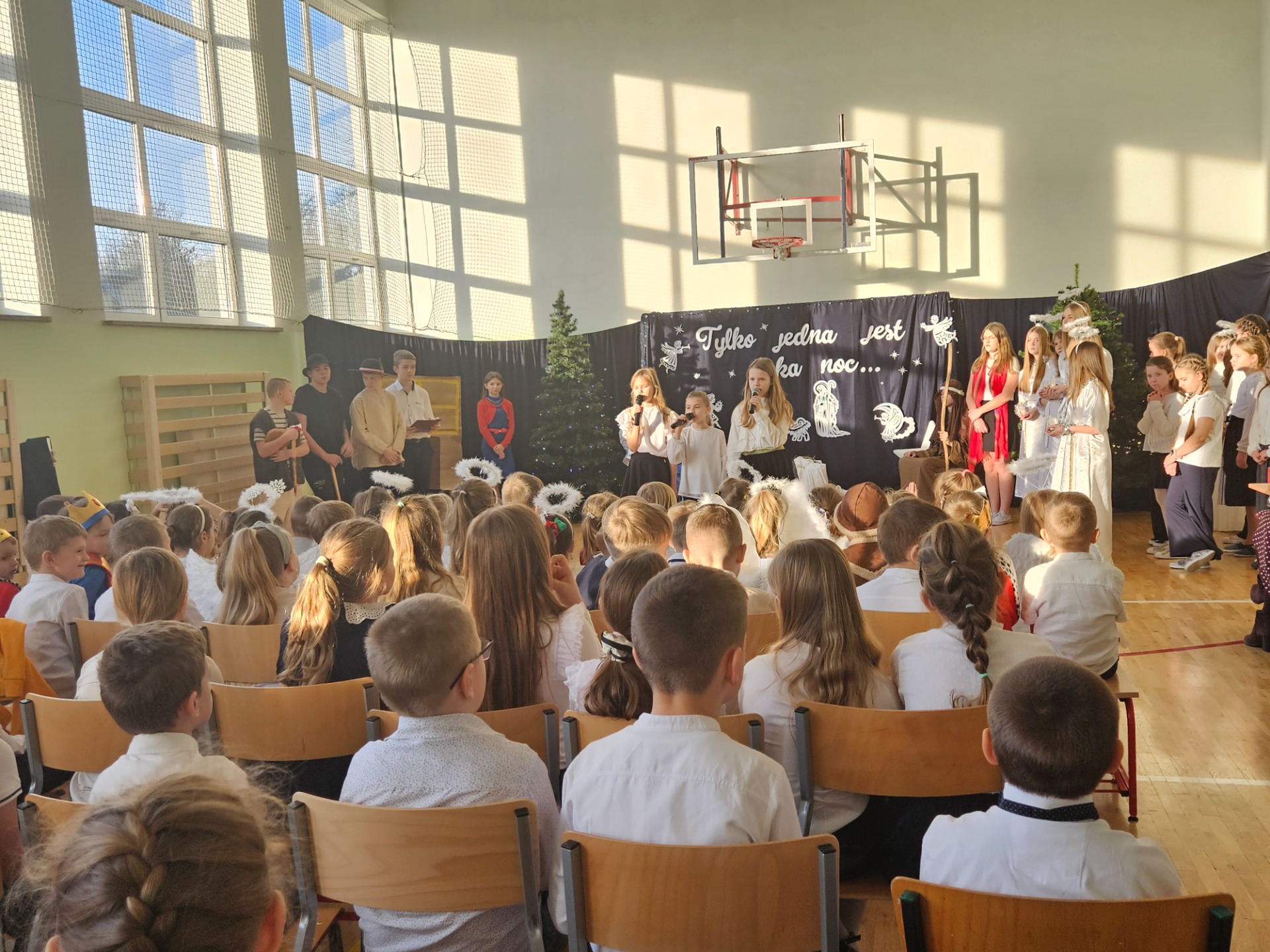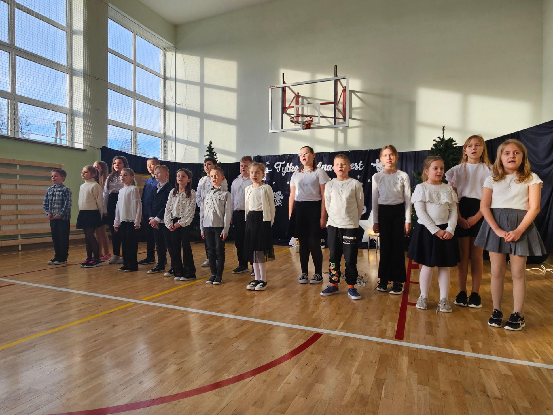 W uroczystości licznie uczestniczyli również rodzice, którzy z dumą i wzruszeniem oglądali występy swoich dzieci. Wspólne śpiewanie wprowadziło ciepły, świąteczny nastrój i sprzyjało integracji całej społeczności szkolnej.