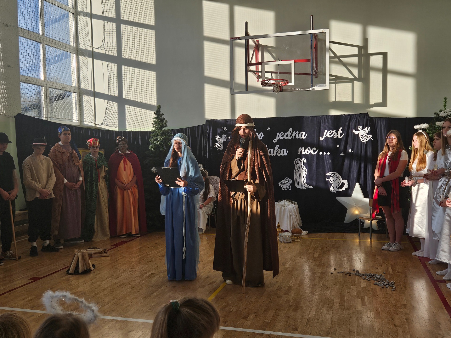 W przedświątecznym czasie w naszej szkole odbyły się wyjątkowe Jasełka bożonarodzeniowe, które wprowadziły całą społeczność szkolną w atmosferę radości, refleksji i świątecznego ciepła. Uczniowie z zaangażowaniem przedstawili historię narodzin Jezusa, przypominając o najważniejszych wartościach płynących z Bożego Narodzenia – miłości, pokoju i wzajemnej życzliwości.