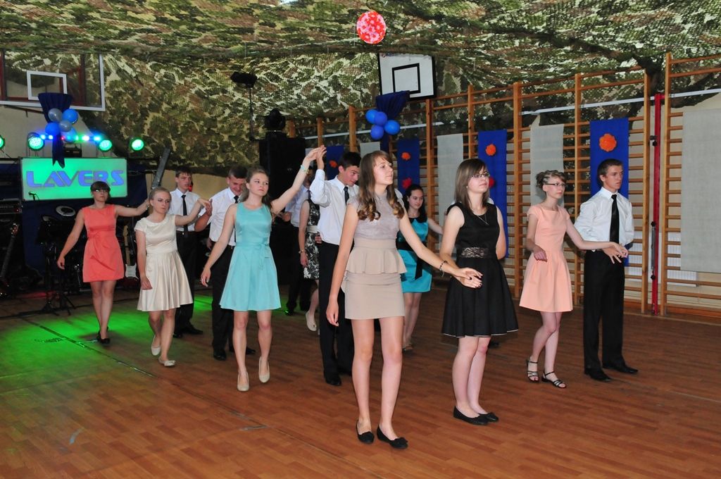 Niemalże w studniówkowych (na)strojach 20 czerwca 2013r. o godz. 17.00 rozpoczął się bal gimnazjalny. Na początku wszyscy rodzice i nauczyciele zostali przywitani przez przedstawiciela Samorządu Szkolnego oraz Panią Dyrektor. Trzecioklasiści rozpoczęli tańcząc poloneza, a następnie walca angielskiego. Uczennice klasy I i II gimnazjum w prezencie dla swoich starszych kolegów zatańczyli układ choreograficzny. Przygotowaniem uczniów do występów zajęła się Pani Kazimiera Sochacka. Oprawę muzyczną zapewnił zespół LAVERS. Na parkiecie tańczyli zarówno uczniowie, nauczyciele i rodzice, którzy przygotowali dla swoich pociech poczęstunek. Zabawa trwałaby od białego rana, gdyby nie fakt, że od 8.00 rozpoczynają się lekcje… Tak więc uczniowie opuścili szkołę tuż po północy.