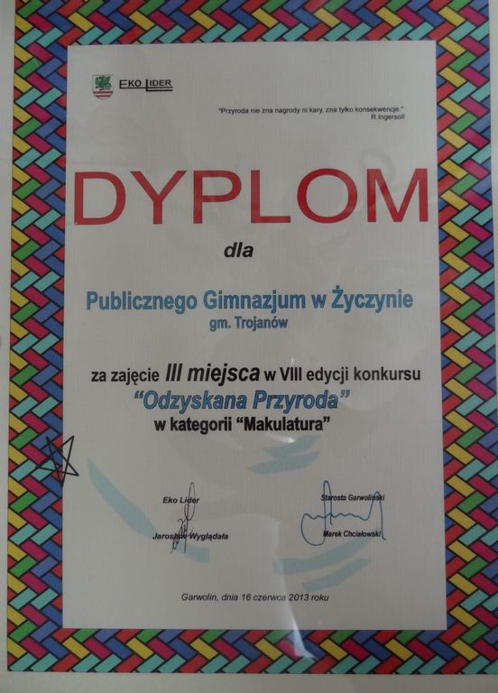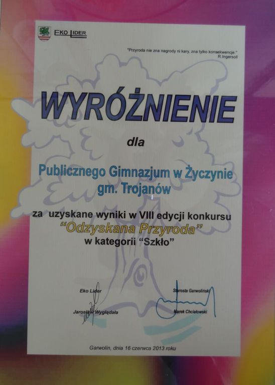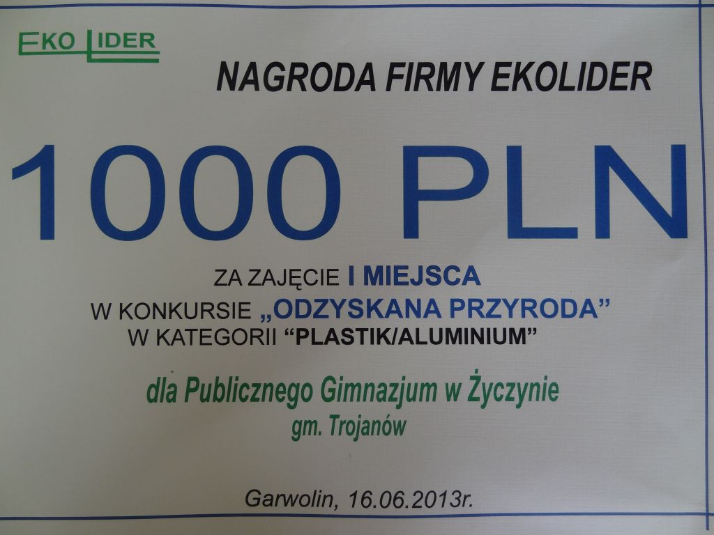 Jak co roku nasza szkoła brała udział w konkursie „Odzyskana Przyroda”, który jest organizowany przez Starostwo Powiatowe w Garwolinie oraz firmę EkoLider.